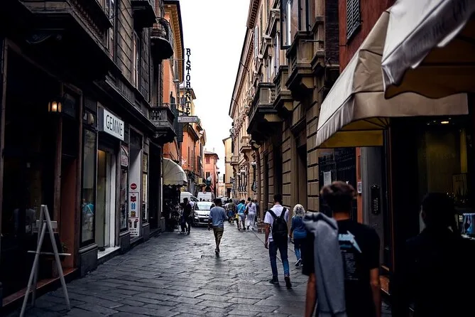 O tour dura algumas horas e inclui várias paradas para degustações pelo centro de Bologna.