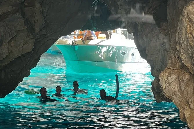 Você vai dar a volta em Capri de barco com um skipper local, passando pelos Faraglioni e parando nas grutas onde a luz dança nas paredes de pedra. Nade ou faça snorkel nas águas esmeralda perto da Marina Piccola, tome bebidas geladas no convés e aproveite as histórias da ilha pelo caminho. Prepare-se para pele salgada e risadas de verdade — não só vistas de cartão-postal.
