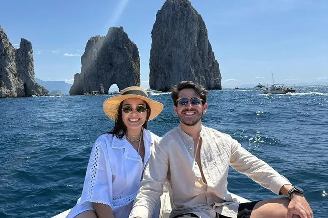 Você verá a Gruta Branca, Gruta Verde, Arco Natural, Faraglioni, baía da Marina Piccola, área do farol — e possivelmente a Gruta Azul, se escolher visitar.
