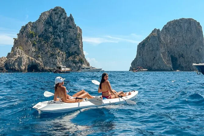 Você vai remar pela costa dramática de Capri com um guia local, explorando grutas e praias escondidas que só dá para chegar de caiaque. Pode nadar nas águas cristalinas, ouvir histórias da ilha e ainda receber fotos em GoPro grátis depois. É perfeito para quem nunca remou antes — só precisa trazer a curiosidade.