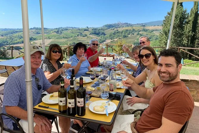 O passeio dura um dia inteiro, com visitas a duas vinícolas, San Gimignano e Piazzale Michelangelo antes de voltar para Florença.