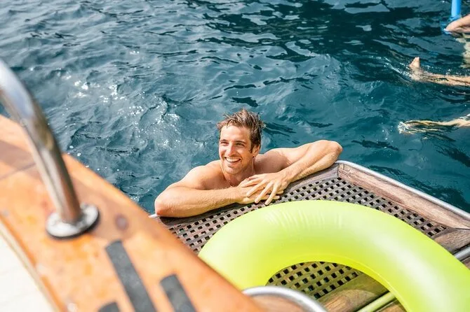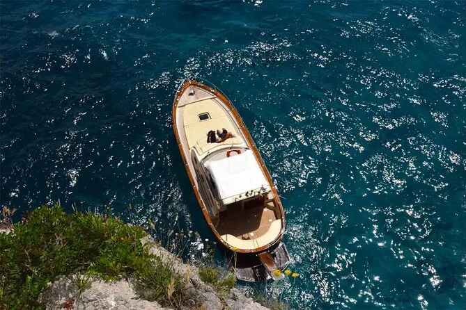 O seu dia começa com o traslado direto do seu hotel ou apartamento em Sorrento para embarcar em um barco confortável e em grupo pequeno pela Costa Amalfitana. Você vai aproveitar prosecco, água, cerveja, refrigerantes, limoncello e petiscos secos enquanto para para nadar em enseadas escondidas como as ilhas Li Galli e a praia de Arienzo — com bastante tempo para explorar Amalfi e Positano antes de voltar ao entardecer.
