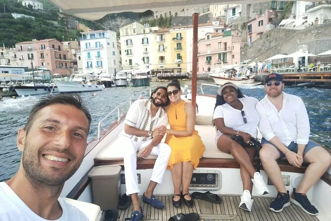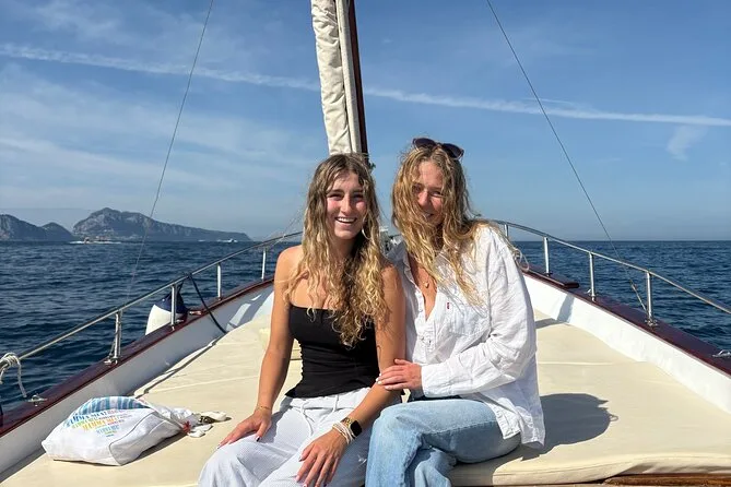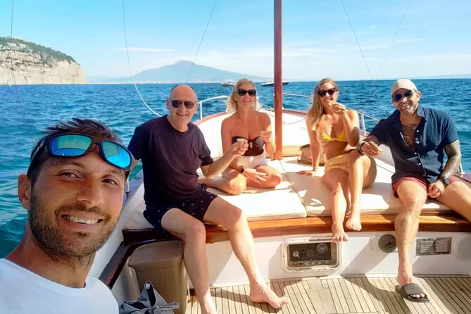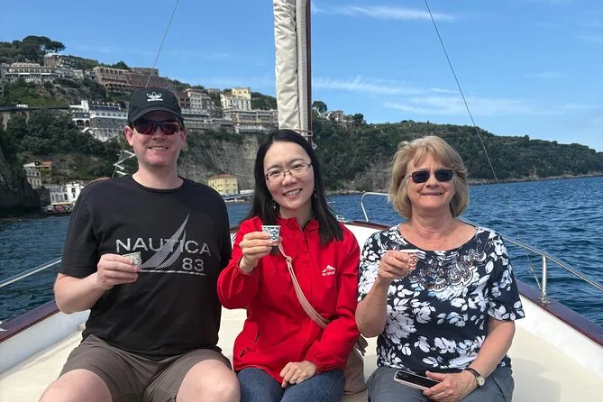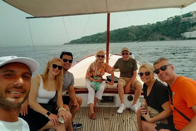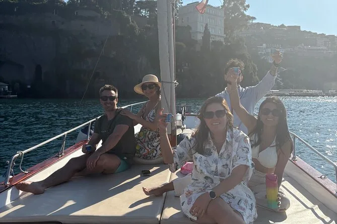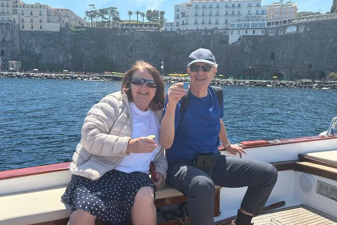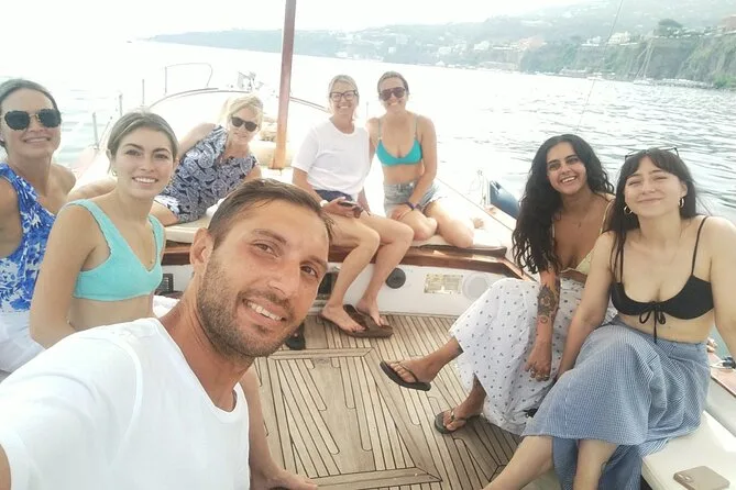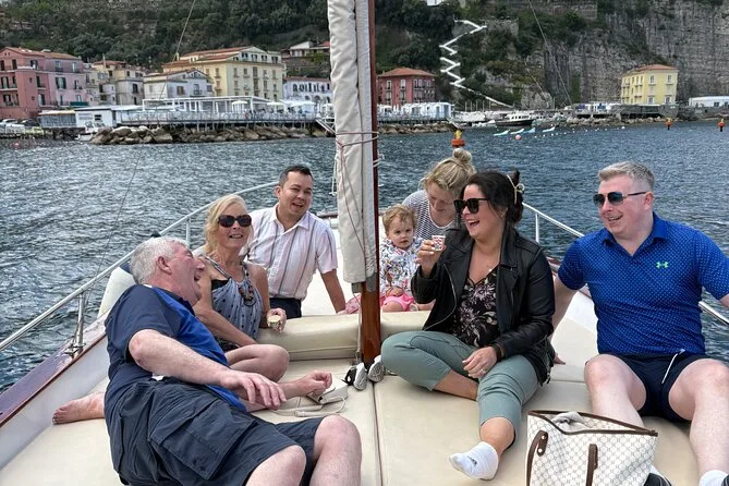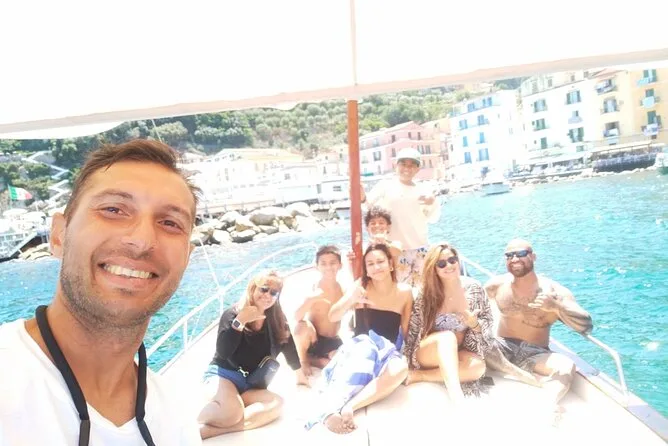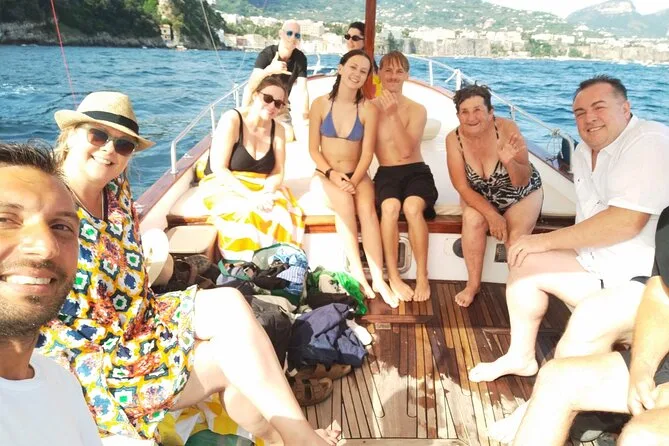 Seu dia inclui check-in na Marina Grande com recepção da equipe, passeio compartilhado de uma hora em gozzo tradicional com skipper que fala inglês pela Costa de Sorrento, paradas para fotos em lugares icônicos como Bagni della Regina Giovanna e Marina di Puolo; parada opcional para nadar com máscaras de snorkel fornecidas; degustação gratuita de limoncello local para adultos; e todos os equipamentos de segurança antes do retorno ao porto.