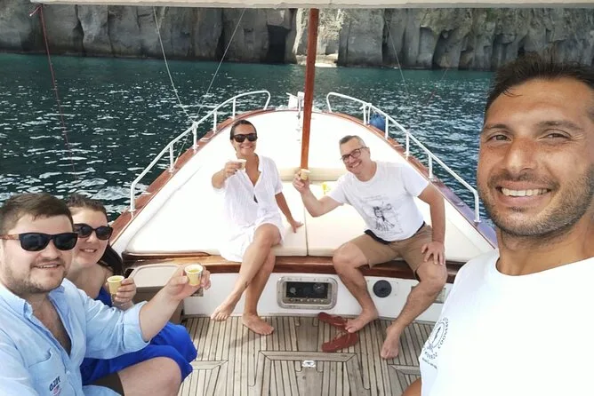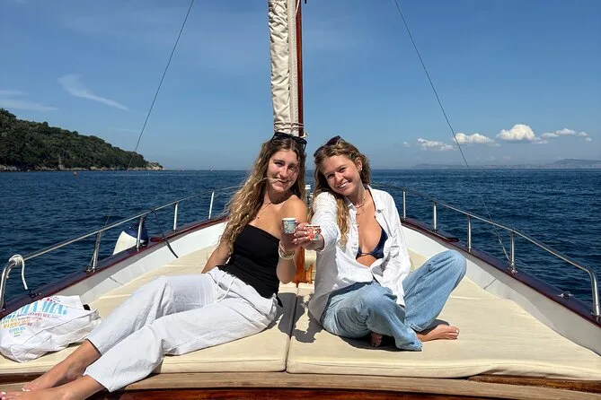 Subimos a bordo de um clássico gozzo Fratelli Aprea na Marina Grande — confesso que fiquei meio receoso com meu equilíbrio, mas o nosso skipper Marco sorriu e me ajudou a entrar como se fizesse isso há séculos. O barco tinha um leve cheiro de sal e casca de limão (ou talvez eu quisesse sentir isso mesmo), e assim que nos afastamos do píer, as casas coloridas de Sorrento começaram a diminuir atrás da gente. O silêncio era maior do que eu imaginava — só o ronco do motor e algumas risadas distantes de outro barco.