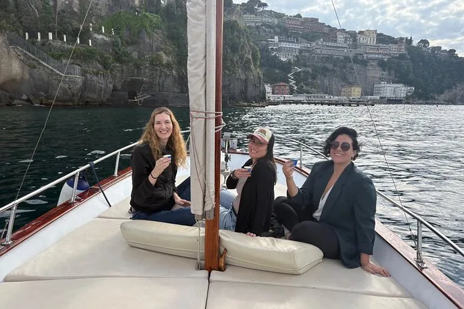 Você vai embarcar num gozzo tradicional de Sorrento com um skipper local, navegar por penhascos impressionantes e ruínas romanas, nadar em águas límpidas do Mediterrâneo e provar limoncello caseiro feito no lugar certo. Prepare-se para risadas, ar salgado, alguns respingos — e uma nova forma de sentir Sorrento quando voltar para terra firme.