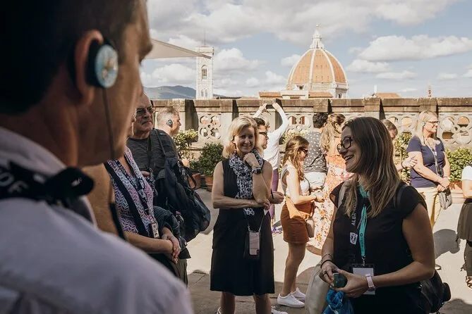 Seu dia inclui ingressos com horário marcado para a Galeria Accademia (para ver o David) e a Galeria Uffizi, evitando filas, um guia local especialista que traz as histórias de Florença à vida enquanto você caminha entre pontos como o Duomo e a Ponte Vecchio, fones de ouvido quando necessário para áudio claro nos lugares movimentados, além de pausas flexíveis conforme o horário escolhido, finalizando entre as ruas vibrantes da cidade.