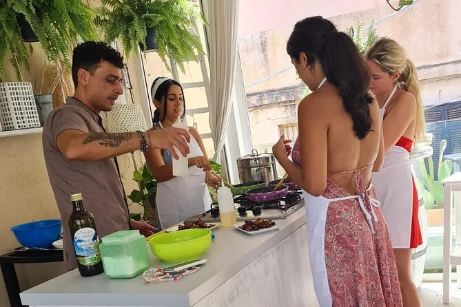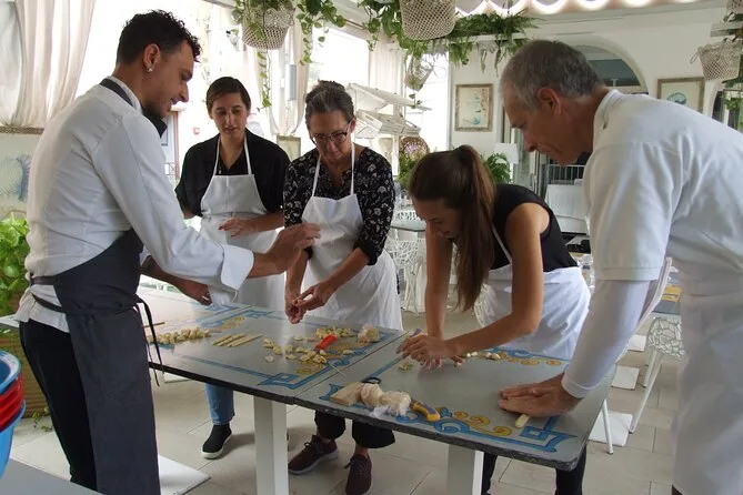Seu dia inclui aulas práticas de culinária siciliana com o Chef Mimmo à beira da praia de Giardini Naxos, todos os ingredientes fornecidos (incluindo produtos locais como pistache de Bronte), degustação de vinhos acompanhada de focaccia e queijos, almoço completo feito por você com massas e pratos de peixe, água mineral durante toda a experiência, pausa para café ou chá, pequenos cannoli tradicionais com limoncello na sobremesa — e ainda um avental e certificado para levar pra casa (manchas de farinha são bônus).