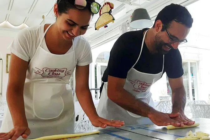 Você vai preparar caponata siciliana, seis tipos de massa fresca, peixe alla ghiotta ou rolinhos de peixe à moda messinesa, além de pequenos cannoli para a sobremesa.