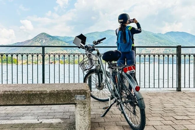 Passeie de eBike pelas ruas e beira do lago de Como com histórias digitais no ouvido