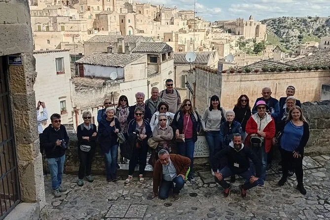 A duração exata não é especificada, mas inclui uma caminhada com paradas nos principais pontos dos Sassi.