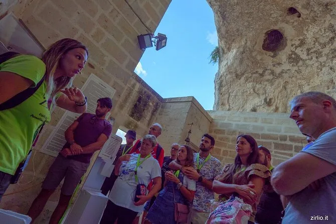 Seu dia inclui caminhada guiada pelos bairros Sassi de Matera com todas as entradas pagas: acesso às principais igrejas rupestres (como a Madonna di Idris), entrada em uma casa caverna tradicional na Vico Solitario e visita à Catedral. Para grupos maiores que dez pessoas, fones de ouvido garantem que você não perca nenhuma história pelas ruas de pedra.