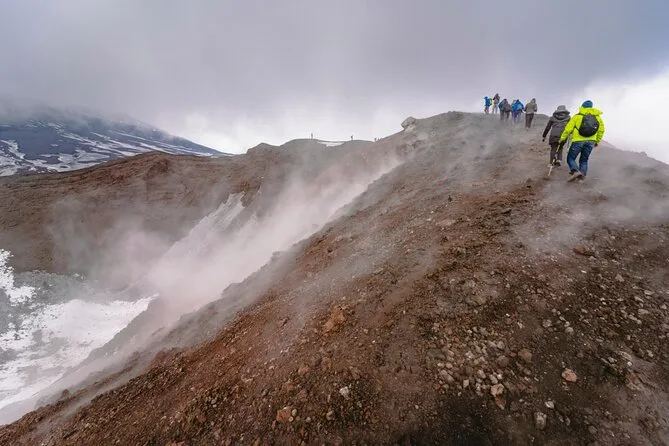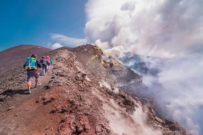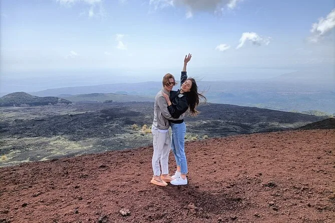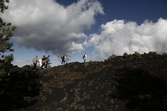 Você visita uma gruta de lava com capacetes e lanternas, faz trilha pelos Crateras Silvestri a 2000 metros e aproveita um almoço leve típico da Sicília.