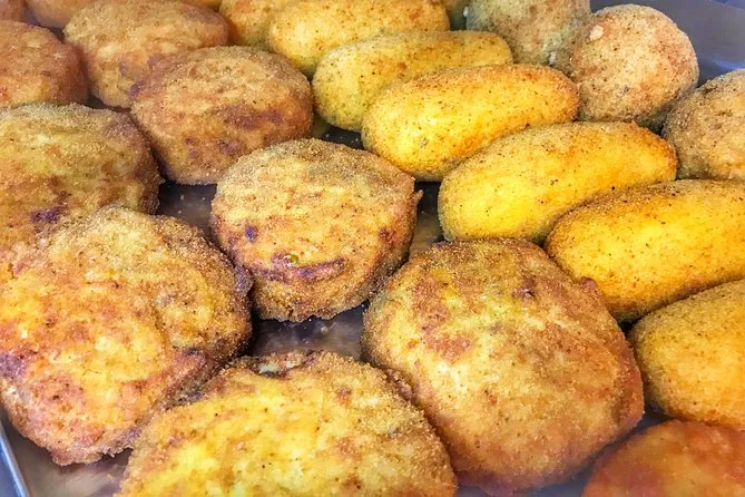 Sua tarde inclui várias degustações de comidas tradicionais napolitanas — biscoitos taralli, mozzarella fresca de uma loja histórica, pizza frita de uma das melhores pizzarias da cidade — além de gelato artesanal e doces clássicos como sfogliatella e babà. Você também vai saborear um spritz e um toque de limoncello pelas ruas movimentadas com seu guia especialista, terminando na Piazza del Gesù Nuovo.
