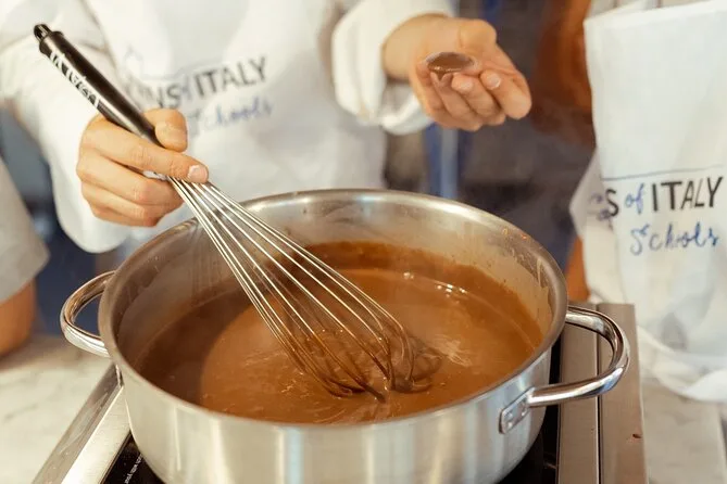 Sua tarde inclui todos os ingredientes e utensílios para fazer pizza e gelato de chocolate (até os cones), aulas práticas com um chef local em Palermo, almoço ou jantar com vinho ou refrigerante conforme a idade, além de um livro digital de receitas e um certificado divertido para levar para casa.