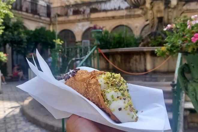 Seu dia inclui um passeio guiado pelo centro histórico de Palermo com um especialista local, várias degustações de comida de rua siciliana (como arancina, sfincione, cannoli), água engarrafada para manter você hidratado entre as mordidas, além de café ou chá em uma das paradas — o almoço ou jantar está coberto nessas degustações para você não ficar com fome.