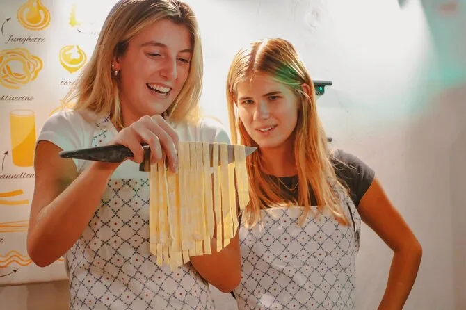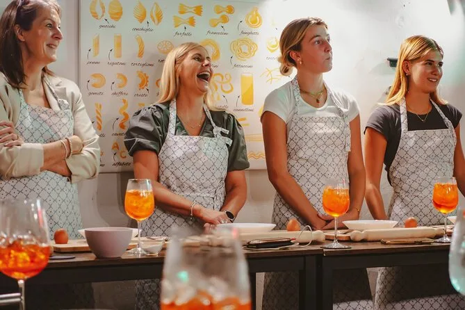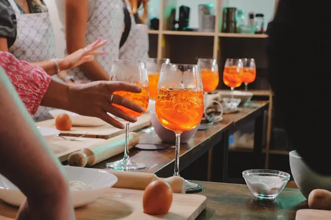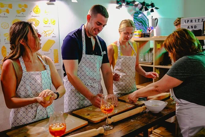 A aula inclui fazer massa fresca com molho, provar três spritz, água e refrigerantes à vontade, receitas para levar e orientação de uma chef local.