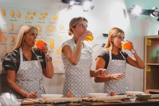 Sua tarde inclui a orientação de uma chef local enquanto prepara fettuccine caseiro com molho tradicional no centro de Roma. Você vai provar três spritz italianos diferentes — Aperol, Hugo e Limoncello — além de água e refrigerantes à vontade durante a aula. Leve as receitas para casa e tente recriar tudo muito depois da sua viagem.