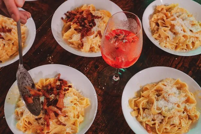 Ria com novos amigos enquanto abre massa fresca numa cozinha animada de Roma, guiado por uma chef local que compartilha receitas e histórias de família. Prove três spritz italianos diferentes enquanto cozinha e come no coração da cidade. Leve para casa receitas e memórias que ficam muito além da farinha nas mãos.