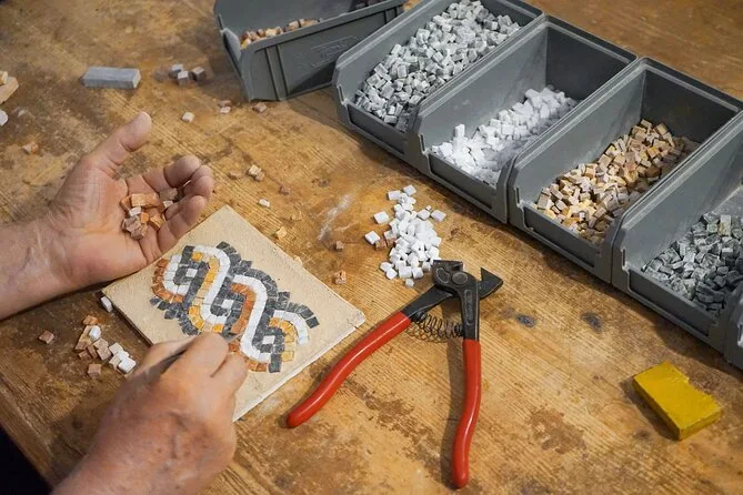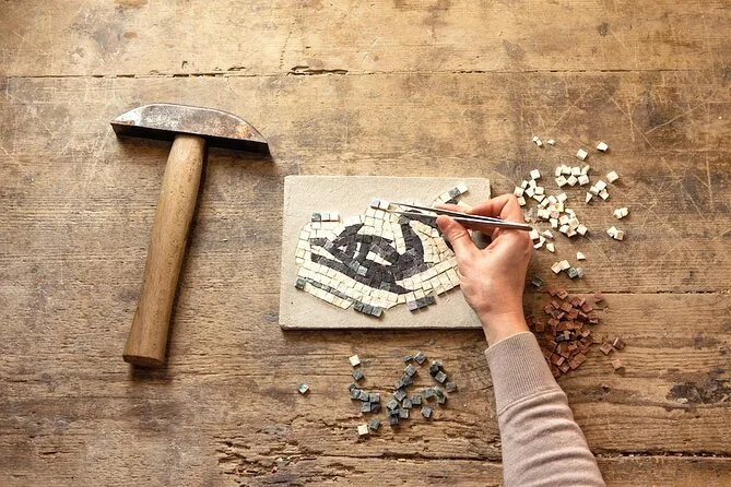 Você vai entrar em um estúdio romano de mosaicos de verdade e aprender com artistas locais a cortar, montar e criar sua própria obra usando ferramentas tradicionais e mármore. Aproveite um café ou chá durante a aula e leve para casa seu mosaico finalizado como uma lembrança única — é uma experiência prática, pessoal e cheia de pequenos momentos inesquecíveis.