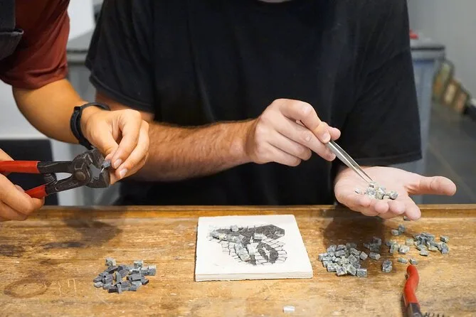 Logo depois de uma rápida introdução, começamos — escolhendo pedacinhos de mármore colorido em bandejas de madeira pesadas. A palavra-chave aqui é paciência (e talvez teimosia). Cortar aquelas pecinhas exige mais concentração do que eu esperava. Giulia me mostrou como segurar a ferramenta direito; mesmo assim, consegui mandar uma peça voando pela mesa. Ela só riu e disse que até os romanos devem ter feito isso também. Tem algo meio relaxante em ir encaixando aquelas pedrinhas até elas começarem a formar uma imagem de verdade.