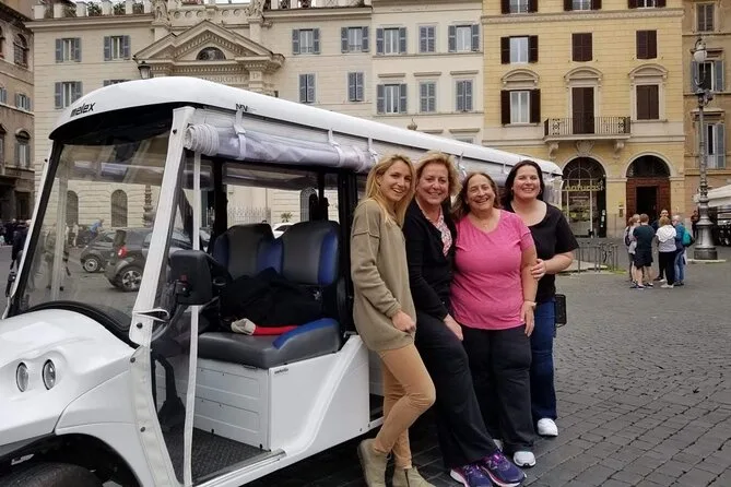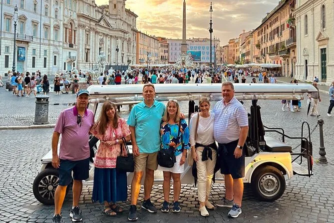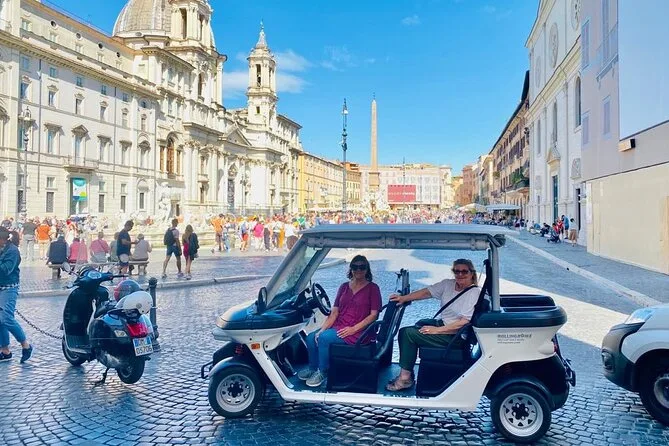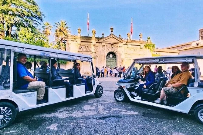 Você vai deslizar pelas ruas de Roma num carrinho de golfe privado com um guia local que ajuda a montar seu roteiro—seja para ver ruínas antigas, praças animadas ou cantinhos tranquilos. Pickup fácil no hotel, histórias que você não encontra em guias e momentos para curtir enquanto a cidade pulsa ao seu redor.
