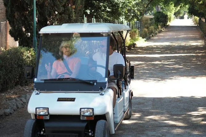 Seu dia inclui transporte confortável em carrinho de golfe legalizado, com cintos de segurança e proteção lateral, água mineral durante o passeio, pickup e drop-off no hotel dentro do centro de Roma (ou encontro na Piazza del Gesù 47), seguro durante toda a viagem e um guia que também dirige e fala inglês. O almoço não está incluído, a menos que você escolha a opção de dia inteiro—mas tem bastante opção para beliscar entre as paradas.