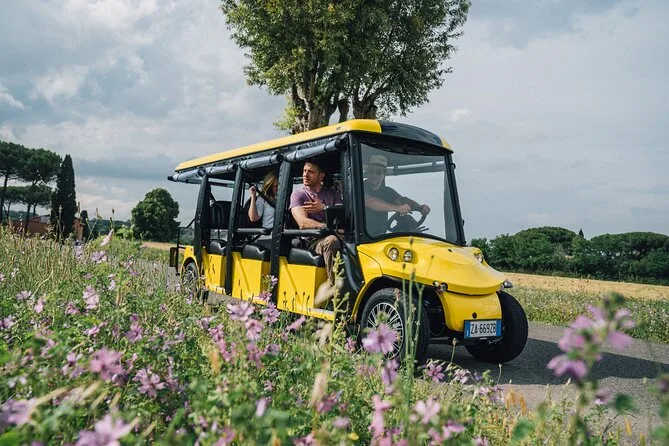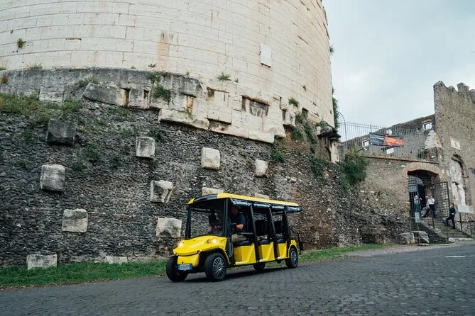 Seu dia inclui retirada num escritório central perto do Panteão em carrinho elétrico com 7 lugares por veículo (podendo haver até dois carrinhos juntos), água mineral para todos, fones para ouvir o guia local em inglês com clareza mesmo durante o trajeto ou caminhadas por lugares como Circo Máximo e Via Ápia Antica; além dos ingressos com visita guiada nas Catacumbas romanas — tudo isso em cerca de duas horas e meia antes de voltar ao ponto inicial.