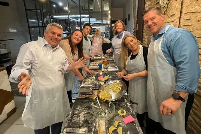 Sua experiência inclui transporte de minibus do ponto de encontro central em Sorrento, todos os ingredientes e utensílios numa cozinha à beira-mar, orientação passo a passo de chefs locais para preparar dois tipos de massa fresca e tiramisu, um copo de Prosecco na chegada, almoço ou jantar com vinho tinto e branco servido à mesa antes do retorno, cheio e talvez ainda com farinha no avental.