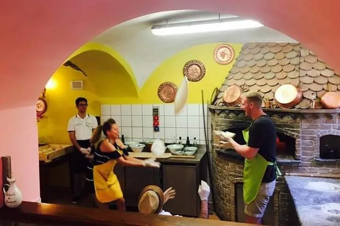 Você vai passear por Sorrento de tuk tuk, tomando limonada caseira entre limoeiros antes de aprender a trançar queijo numa fazenda local. Prove provolone com vinho, depois prepare sua própria pizza napolitana numa cozinha aconchegante. Termine com sobremesa e limoncello sob os galhos cítricos — um dia cheio de sabor, risadas e memórias que vão ficar na cabeça.
