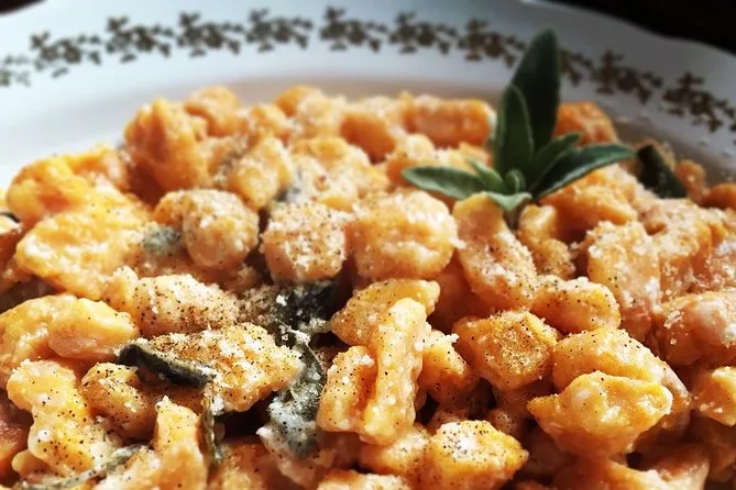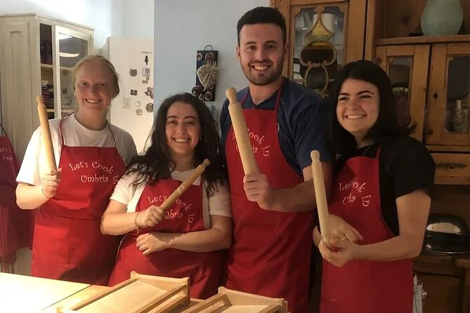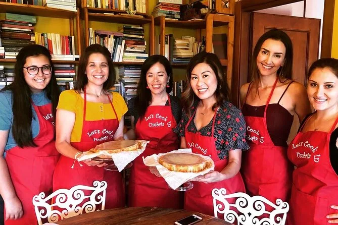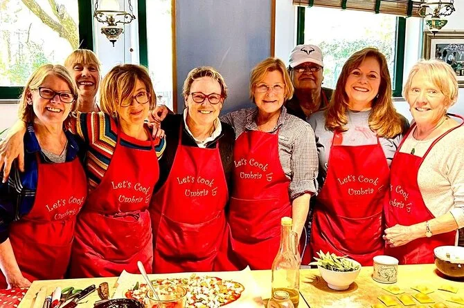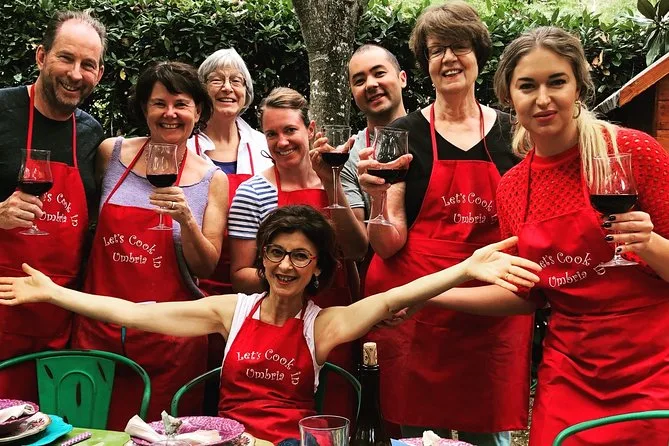 Seu dia inclui uma aula prática de meio período numa fazenda na Umbria, usando legumes orgânicos da própria horta, azeite extra virgem e vinho tinto produzido no local. Você vai preparar uma refeição de quatro pratos antes de sentar para o almoço com vinhos locais e café após a sobremesa. Também recebe um avental para ficar, receitas impressas e um certificado de participação antes de voltar a explorar o campo umbro.