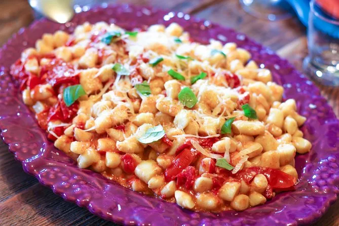 Começamos colhendo tomates e ervas direto da horta. Tentei falar “strangozzi” do jeito certo — a Carla riu quando eu falei errado, mas me deu um joinha pelo esforço. Tem algo especial em sovar a massa enquanto ela conta as histórias das receitas da avó, especialmente os truques para fazer gnocchi. O azeite que usamos era prensado ali pertinho, morro abaixo; dava para sentir aquele sabor verde e picante em cada mordida. Fazer ravioli com ricota fresca foi mais bagunçado do que eu imaginava — farinha voando para todo lado, mas ninguém se importou.