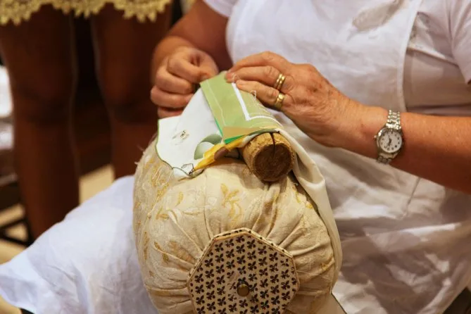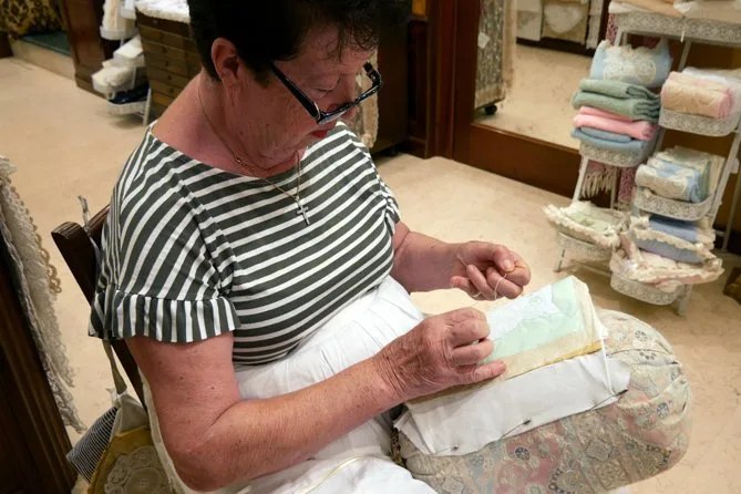 Você vai acompanhar a renda tradicional feita por artesãs locais em Burano como parte da experiência.