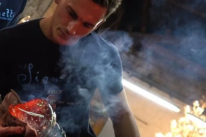 Seu dia inclui transporte privado de barco pelo Grande Canal com guia local, traslado do hotel ou porto no local escolhido, entrada em uma fábrica de vidro em Murano (com transfer shuttle para Burano) e retorno de barco privativo — você só precisa chegar pronto para explorar.