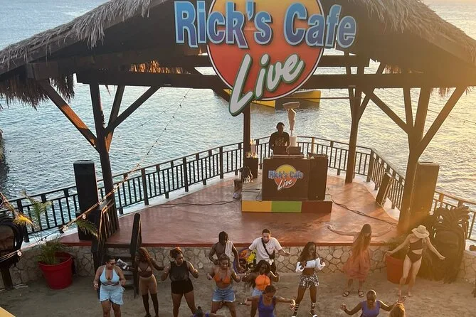 Sim, você visita o Rick’s Café para ver o pôr do sol e pode assistir ou participar dos saltos nos penhascos.