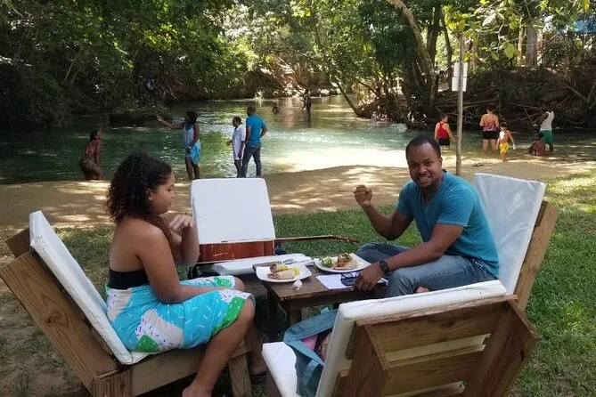 Seu dia inclui traslado do hotel ou porto de cruzeiro em Ocho Rios, todas as entradas para Blue Hole e Dunn’s River Falls com guias certificados, uma cadeira à beira do rio no Reggae Hill com entretenimento leve e um almoço jamaicano em estilo tapas com drinks da casa ou limonada, antes de voltar juntos no fim da tarde.