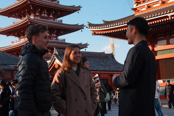 Você vai explorar o bairro de Asakusa em Tóquio com um guia local, provar petiscos na rua Nakamise e ouvir histórias sobre o templo Senso-ji. Vai parar em santuários tranquilos que a maioria dos turistas nem percebe e terminar o passeio à beira do rio Sumida, admirando o Tokyo Skytree. Prepare-se para risadas, sabores novos e momentos que vão ficar na memória.
