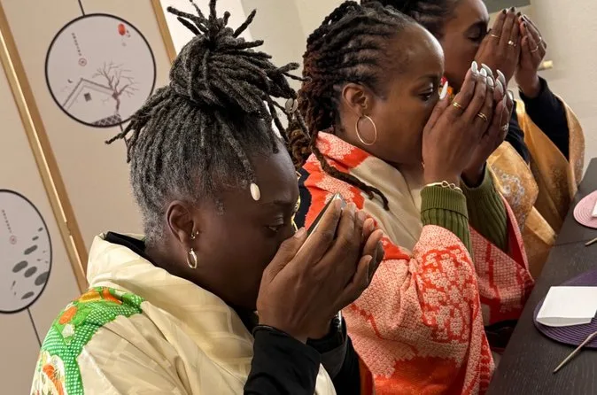 Você vai vestir um kimono (opcional, mas super divertido), sentar-se confortavelmente à mesa em Asakusa, assistir à preparação do matcha e depois fazer o seu próprio. Prove delicados wagashi sazonais acompanhados de duas tigelas de matcha premium. Um momento tranquilo e vibrante onde a tradição vira algo pessoal.