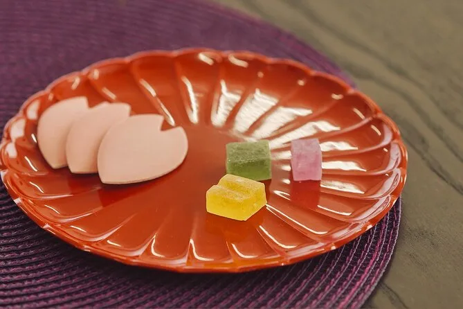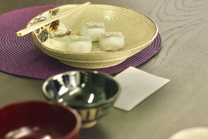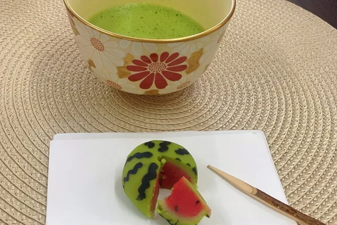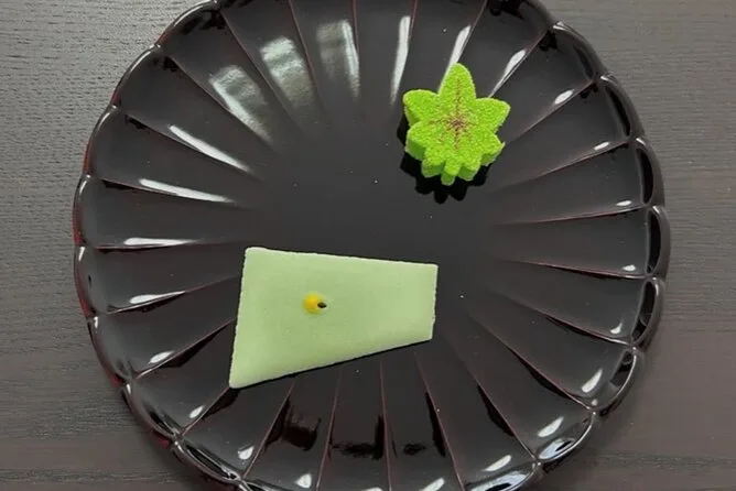 Você vai provar wagashi japoneses sazonais cuidadosamente selecionados para acompanhar o matcha.