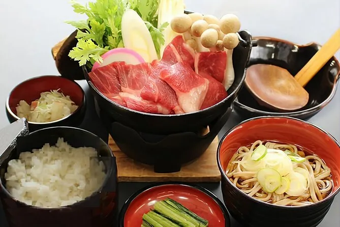• Almoço com sukiyaki de carne no Shinshu Fruit Land