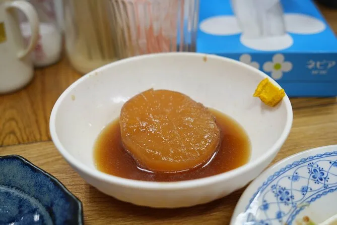 Em algum momento entre os gyozas (ver eles sendo dobrados à mão é hipnotizante) e o nikudofu que tinha gosto de comida caseira mesmo não sendo minha, percebi como é fácil se sentir em casa aqui. As pessoas acenavam ou gritavam “oishii?” enquanto passávamos; uma senhora até nos ofereceu mochi piscando para a gente. A última parada foi num lugar animado com tonpeiyaki — basicamente uma omelete recheada com porco — além de karaage e edamame que sumiram mais rápido do que eu conseguia contar. A sobremesa foi uma panqueca fofinha; até hoje não sei o que tinha dentro, mas me fez sorrir.