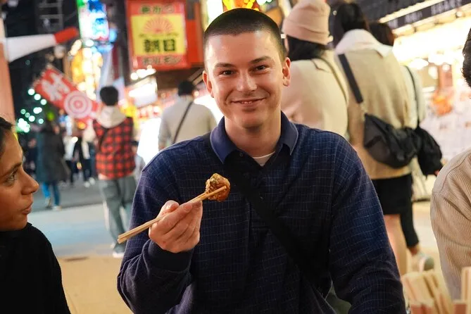 Sua noite inclui acompanhamento de um guia local que te leva pelas ruas nostálgicas de Shinsekai, com paradas exclusivas em até cinco restaurantes familiares para provar até 13 pratos; tudo isso enquanto compartilha histórias e dicas antes de voltar satisfeito e cheio.