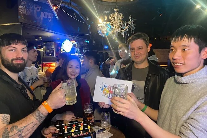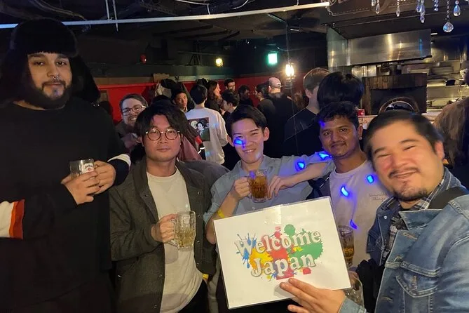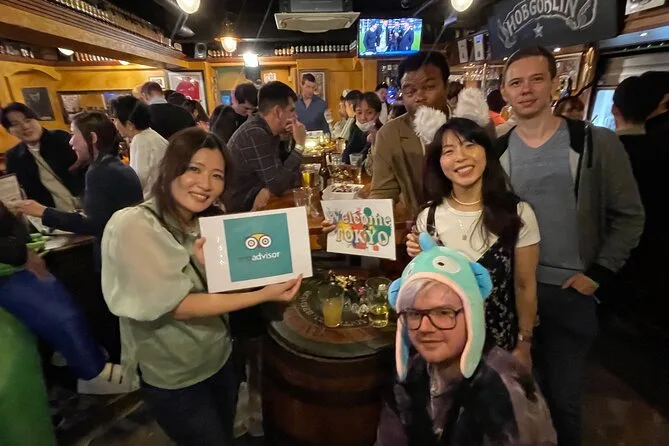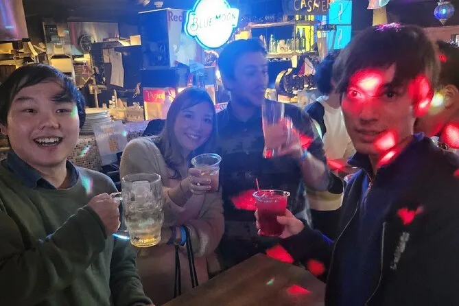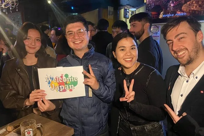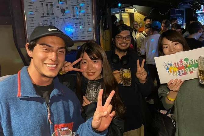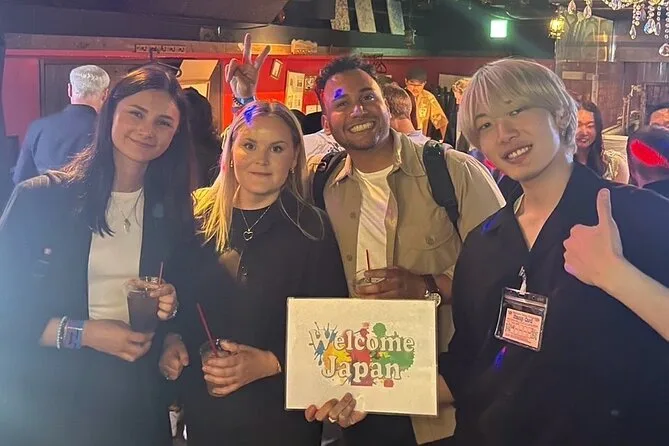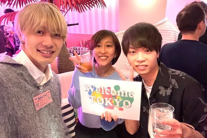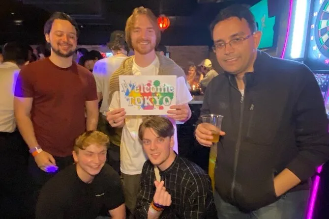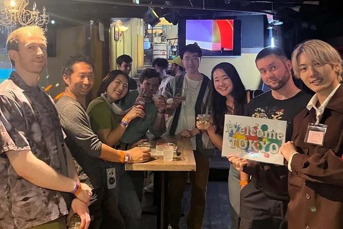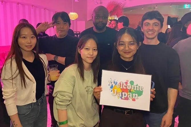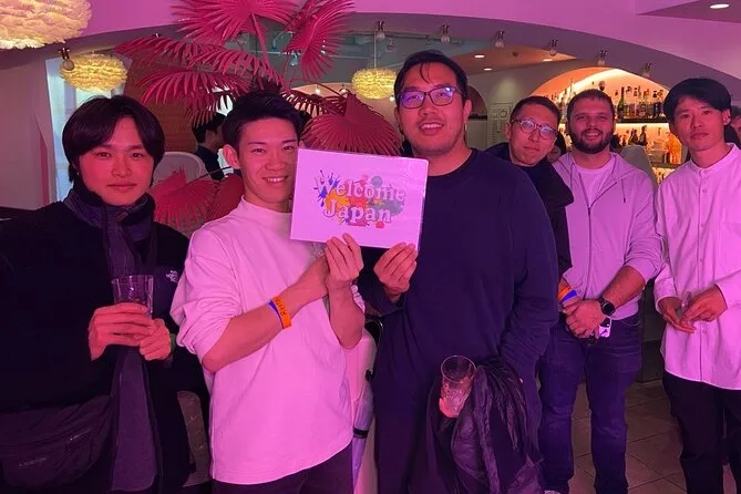 Sua noite inclui entrada num bar animado em Shibuya com open bar das 19h30 às 22h, jogos de mesa como Jenga e Uno organizados pelos anfitriões, além de pulseiras e crachás que facilitam conhecer gente nova — sem precisar falar japonês ou ter conexões prévias.