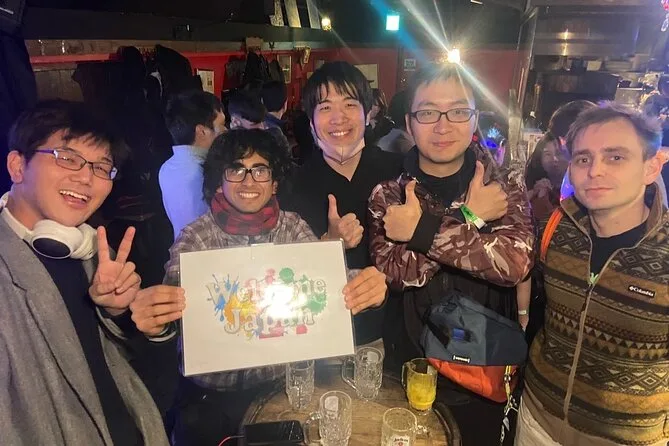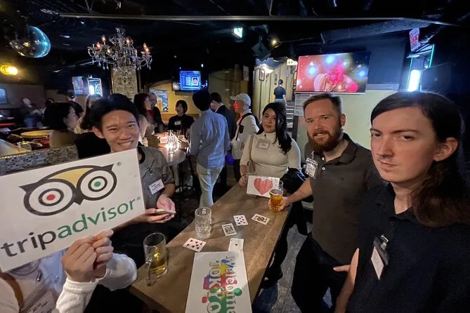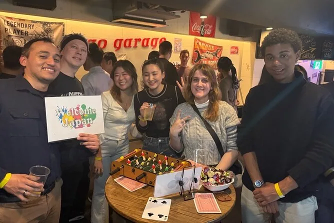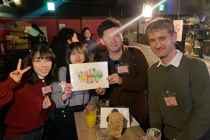 Entre na agitação noturna de Shibuya numa festa feita para quem está sozinho, com crachás que quebram o gelo rapidinho e jogos de mesa para descontrair. Aproveite drinks à vontade das 19h30 às 22h enquanto troca ideias com locais e viajantes — mesmo se for tímido, logo estará contando histórias jogando Jenga ou Uno.