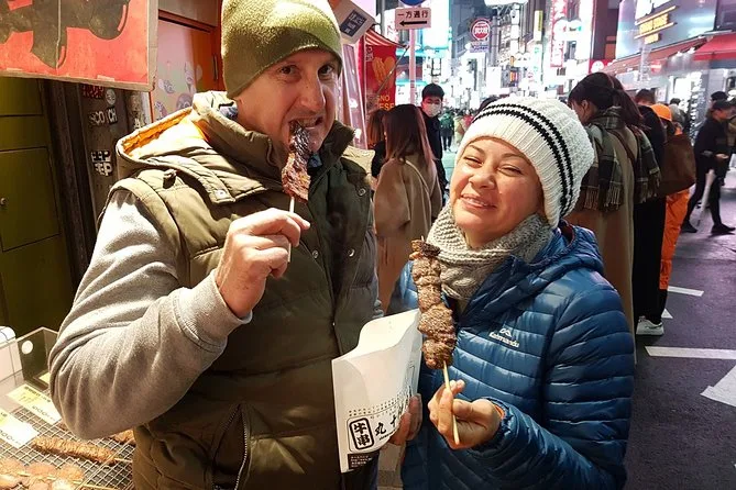 Sua noite inclui cinco paradas para comidas de rua em Shibuya com uma bebida (alcoólica ou não), sobremesa na última parada, além de histórias do seu guia local por cada viela. Cardápios familiares para crianças (como espetinhos de frango), atendimento flexível para necessidades alimentares e o passeio termina no centro de Shibuya, perto dos pontos de vida noturna — sem preocupação para voltar.