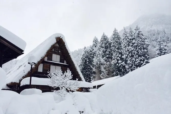 Seu dia inclui transporte confortável em ônibus com ar-condicionado, com saída da saída oeste da Estação Kanazawa, guia que fala inglês contando histórias durante o trajeto, mapas para explorar as aldeias de Shirakawa-go e Gokayama no seu ritmo, além de um almoço japonês com pratos tradicionais da região de Hida antes do retorno à tarde.