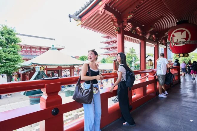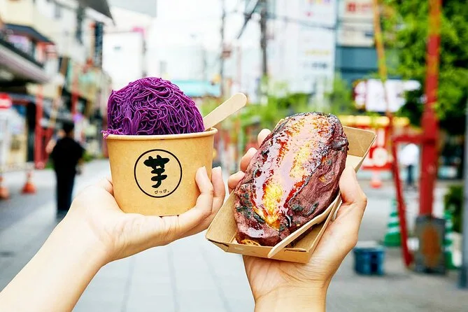 Você vai caminhar pelas ruas animadas de Asakusa com um guia local, provar melon pan fresquinho e doces de matcha perto do Templo Senso-ji, tirar sua sorte entre nuvens de incenso, conhecer lojas de espadas samurai e terminar explorando petiscos diferentes em um supermercado típico de Tokyo. Prepare-se para risadas, surpresas e talvez seu novo lanche de rua favorito.