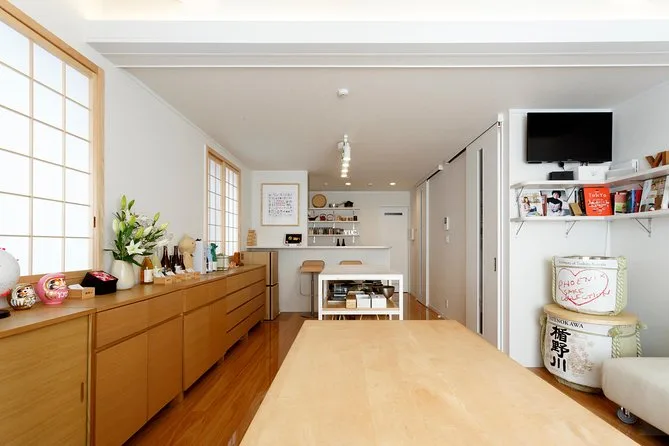 A aula é realizada em uma cozinha caseira dentro de bairros tradicionais de Tóquio.