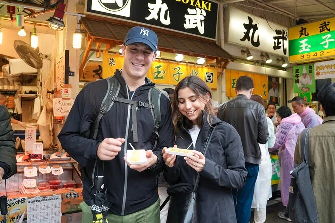 Sua manhã inclui entrada guiada no Meiji Jingu e no Templo Senso-ji, bastante tempo para explorar o Mercado de Peixe Tsukiji com degustação de sushi ou sashimi e petiscos locais como mochi e croquete — tudo acompanhado por um guia em inglês que conta histórias pelo caminho. Fotos tiradas durante o passeio também estão incluídas como lembrança.