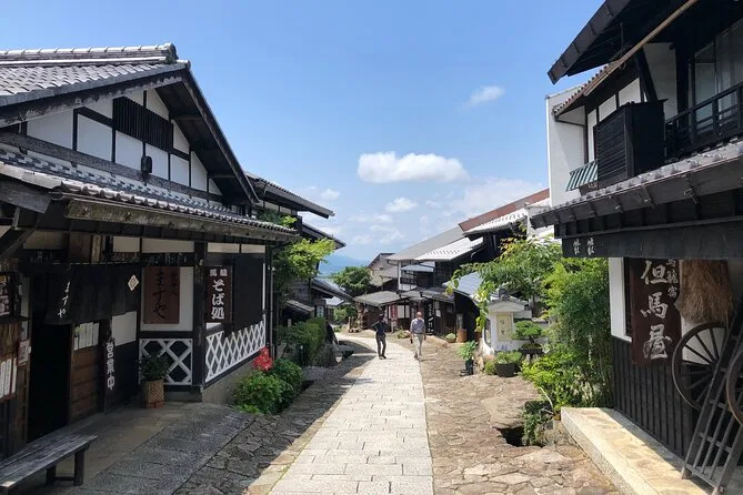 O seu dia inclui encontro com o guia que fala inglês na estação Nakatsugawa, transporte de ônibus até Magome-Juku, entradas para museus ao longo da rota e um almoço tradicional japonês antes de finalizar na estação Nagiso à tarde.