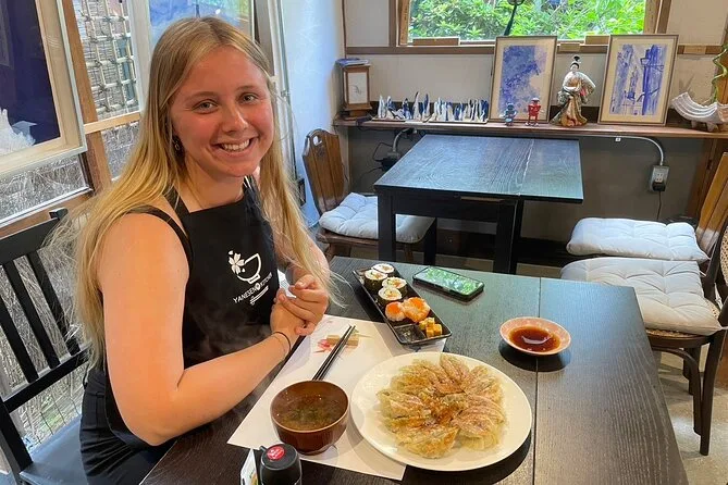 Você pode escolher entre sushi caseiro, bento, peixe ou frango teriyaki, okonomiyaki, gyoza, tonkatsu, udon feito do zero, tempurá ou limpar peixe no estilo japonês.